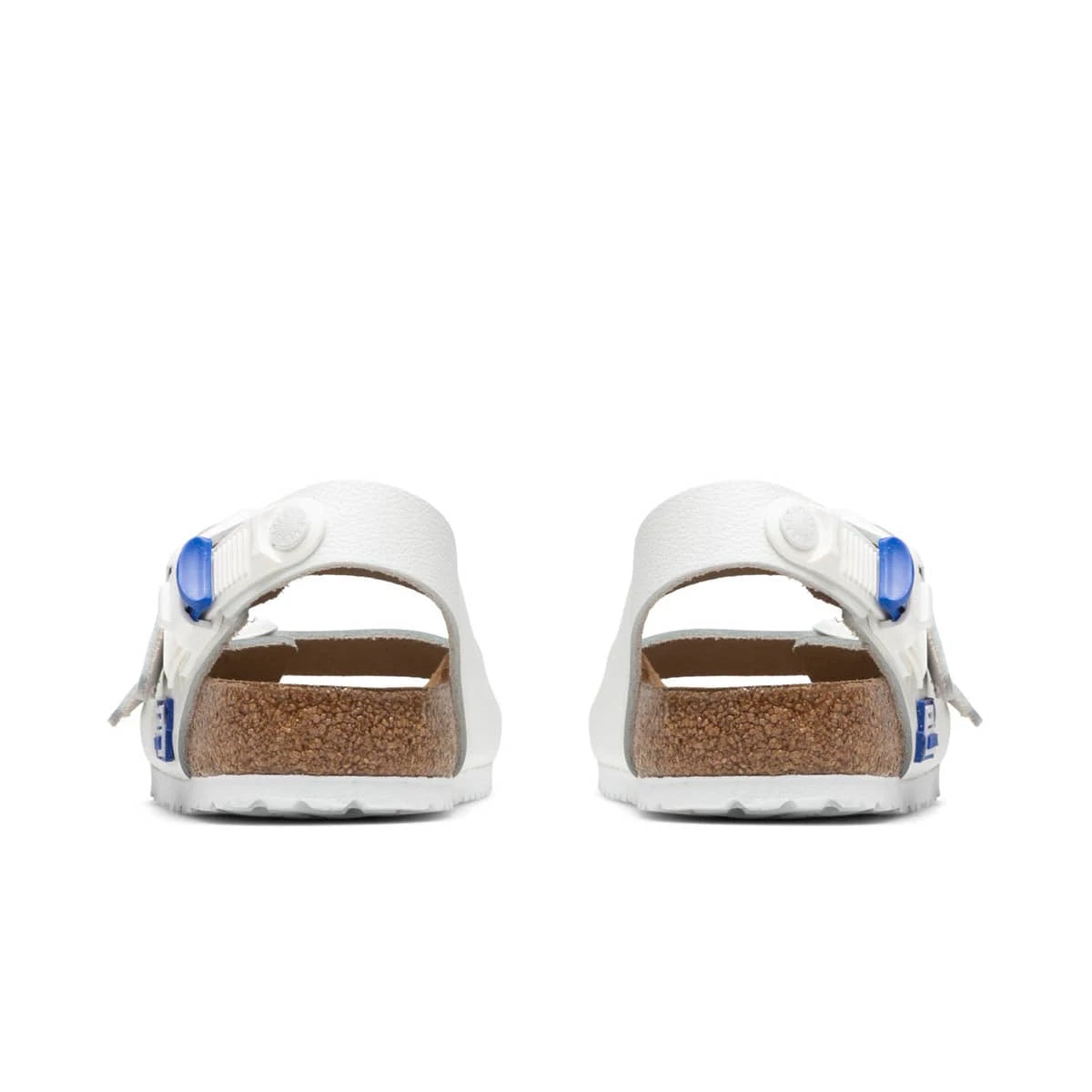 The BIRKENSTOCK Milano combines a considered fit with classic design, plus the addition of a rear strap. The Milano is crafted from soft, white-grain leather, featuring a special tech closure sourced from Switzerland. The made-in-Germany model is finished with a co-branded badge attached to the upper.