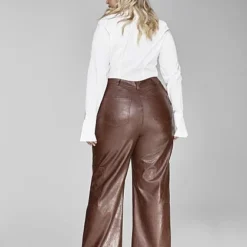 Fashion To Figure Katharina Dark Brown Seam Front Faux-Leather Pants