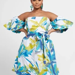 Fashion To Figure Elizabeth Watercolor Print Puff Sleeve Dress