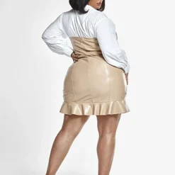 Fashion To Figure Kaila Strapless Faux Leather Dress With Ruffle Hem