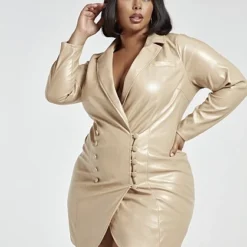 Fashion To Figure Kat Faux Leather Blazer Dress