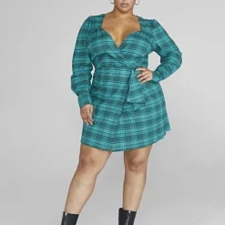 Fashion To Figure Kathleen Plaid Faux Wrap Dress