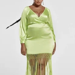 Fashion To Figure Kellie Satin Fringe Dress – Nadia X FTF