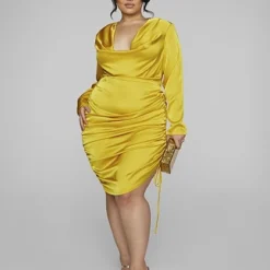 Fashion To Figure Kaley Cowl Neck Ruched Dress
