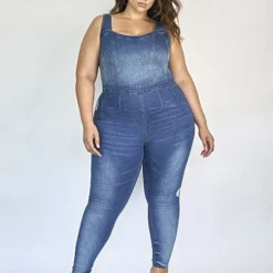 Fashion To Figure Lauren Sleeveless Denim Jumpsuit