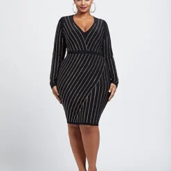 Fashion To Figure Luciana Deep V-Neck Satin Dress
