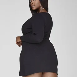 Fashion To Figure Paulina Side Button Ribbed Knit Sweater Dress