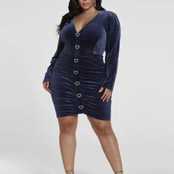 Fashion To Figure Sheila Heart Button Velvet Dress