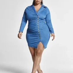 Fashion To Figure Carly Denim Dress With Asymmetrical Button Detail