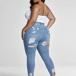 Fashion To Figure Mid Rise Blue Wash Destructed Skinny Jeans