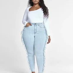 Fashion To Figure High Rise Ankle Length Skinny Jeans With Side Fringe