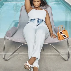 Fashion To Figure High Rise Bleached Wash Straight Leg Jeans