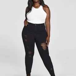 Fashion To Figure High Rise Black Destructed Skinny Jeans – Tall Inseam