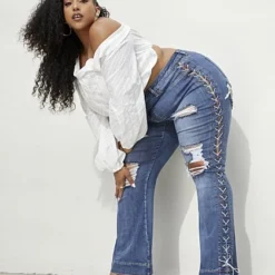 Fashion To Figure High Rise Lace Up Side Flare Jeans