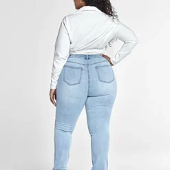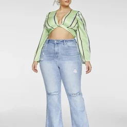 Fashion To Figure High Rise Destructed Light Wash Flare Jeans