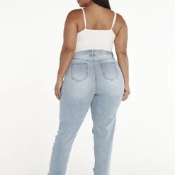 Fashion To Figure High Rise Destructed Straight Leg Jeans