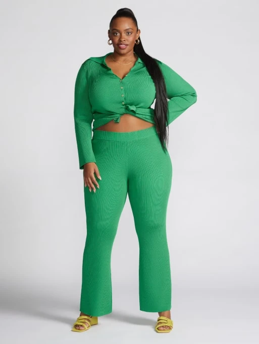 Comfy but chic, these ribbed knit pants bring the drama with a chic wide leg and bold spring-ready color. Finish the look with the matching top and heels or pair with a bodysuit and blazer for an elevated look.