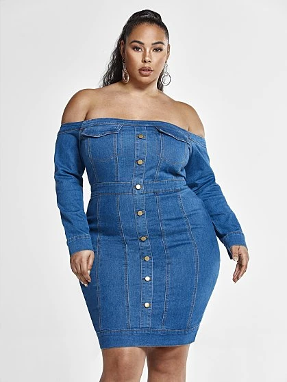 Be the first to review “Fashion To Figure Alexis Off The Shoulder Denim Dress” Cancel reply