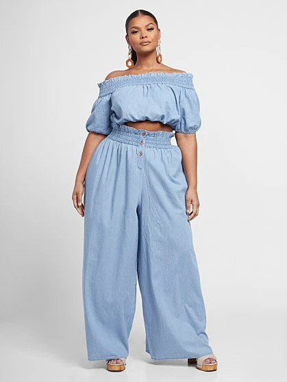 Be the first to review “Fashion To Figure Alicia Paperbag Waist Chambray Wide Leg Pants” Cancel reply