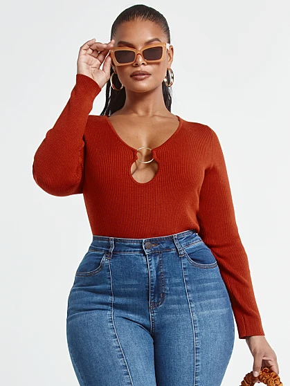 The bodysuit has been updated this season in a cozy sweater knit and sexy details. This must-have style has an O-ring insert at the bust that shows off a little skin. Pair with skinny jeans and booties for an Insta-worthy moment.