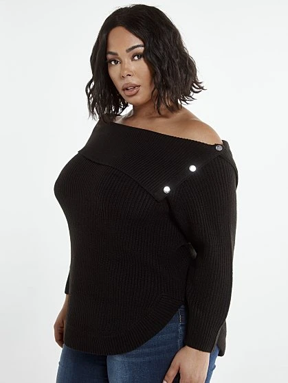 Be the first to review “Fashion To Figure Amelia Split Collar Sweater With Snap Detail” Cancel reply