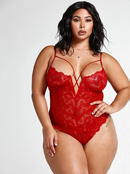 The perfect little lingerie bodysuit that’s a sexy standout. And you can’t go wrong with a red bodysuit. It’ll add a bold touch to any look and then look so sexy on its own. With strappy details and an allover see-through floral lace bodice, you’ll feel absolutely gorgeous in this must-have piece.