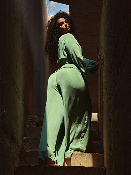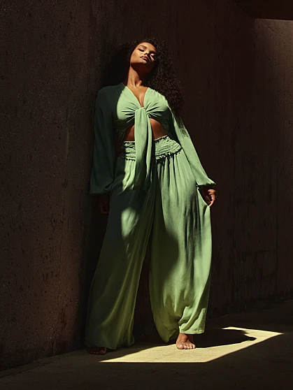 The muted shade of green on these effortless gauze pants is a great neutral option that’s chic and matches well with almost everything. Pair with the matching top for the perfect warm-weather look.