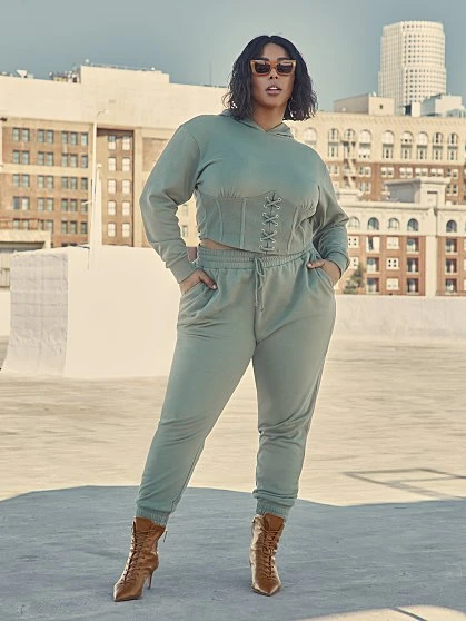 Only FTF can make a jogger look sexy and we’re sure our FTF Babes approve! These fitted joggers hug your curves in all the right places while looking glam and sleek. From the drawstring waist to the detailed hem cuffs and beautiful neutral olive shade, this style is a must-have for any glamleisure look. Wear with the matching corset hoodie to complete the look.