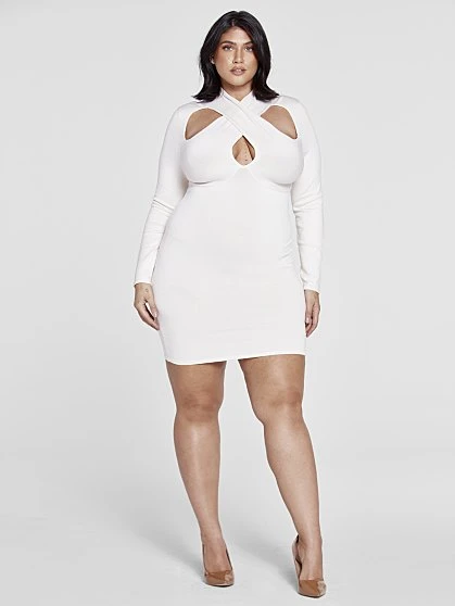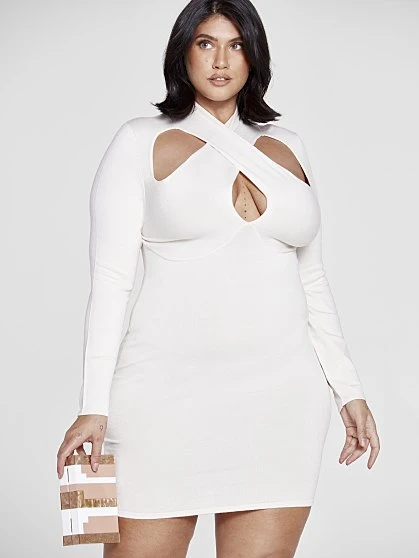 A dress that’s sexy AND cozy?!? Yes, please! Fits like a glove and so effortless, this stunner shines in white and is ready to wear to your next white affair or just because. The fron criss cross detail is playful and elevates this dress to statement-maker status. Pair with heels and a gold metallic clutch to complete the look.