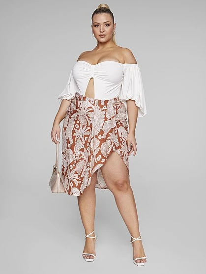 Be the first to review “Fashion To Figure Blythe Faux Wrap Printed Skirt” Cancel reply