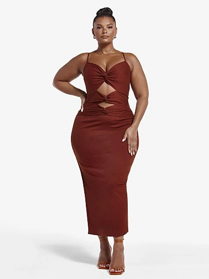 Chocolate shades are on-trend going into the Fall season and this is the perfect dress to make that transition smooth and in style. Featuring adjustable thin straps and a chic maxi length, this dress has major sexy vibes with its front knit detail that creates cutouts to show some skin. The stretchy ribbed knit fabric is so comfortable and effortless. The high side slit ensures this dress will make a statement. Just pair with strappy heels and you’re ready to be in the spotlight.