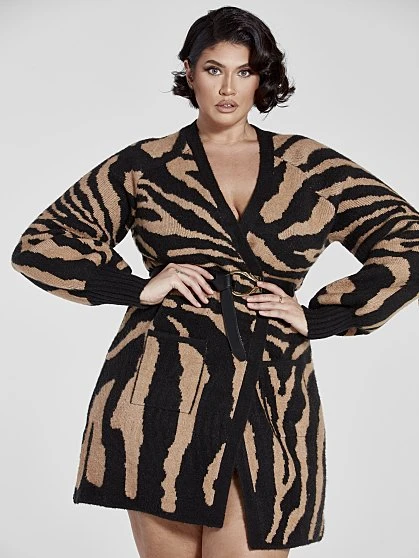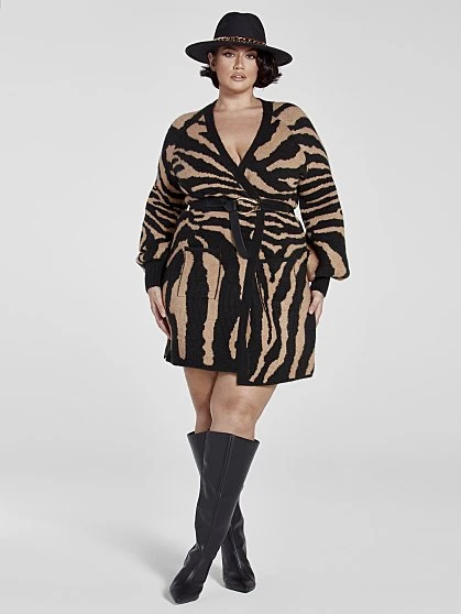 You’ll love the versatility of this gorgeous cardigan that shines in a chic tiger print. Wear it as a cardigan or a dress with the simple addition of a belt. Pair with tall boots, booties or heels. You’ll be creating fresh looks all season with this cardigan, making it a must-have.