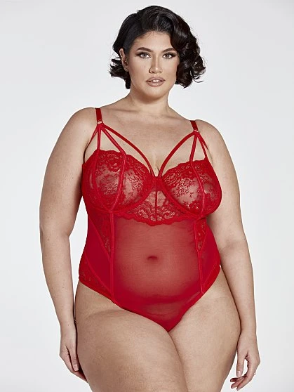 The perfect little lingerie bodysuit that’s a sexy standout. It’ll add a bold touch to any look and then look so sexy on its own. With strappy details and an allover see-through lace bodice, you’ll feel absolutely gorgeous in this must-have piece.