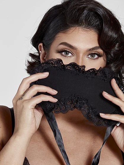 A sexy little lingerie set, perfect for a flirtacious evening in. Featuring a bralette, comfy yet sexy shorts, and matching sleep mask, this will be your new go-to lingerie PJ set.