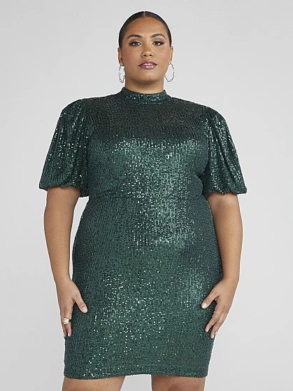 Shiny sequins paired with a beautiful emerald green colorway come together to create a stunning masterpiece of a dress that’s a must-have. The bodycon silhouette fits your curves like a glove and the above-the-knee length shows off your gorgeous legs. The cutout detail on the back adds a playful element. Pair with strappy heels to complete the look.
