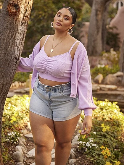 Lilac is such a pretty color that looks good against so many skin tones. It screams spring and we are here for it! This cami sweater is cozy and sexy with its cropped length and close to body fit. The diamond embroidery makes it stand out, pairing perfectly with the matching cardigan, sold separately. Just add denim shorts and strappy heels for a cute day look.