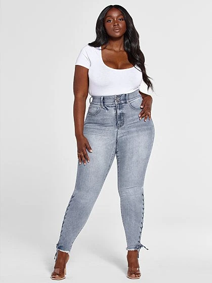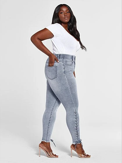 Be the first to review “Fashion To Figure Curvy Fit Skinny Jeans With Lace-Up Detail – Short Inseam” Cancel reply