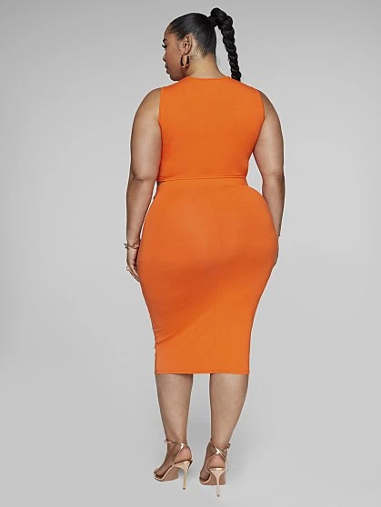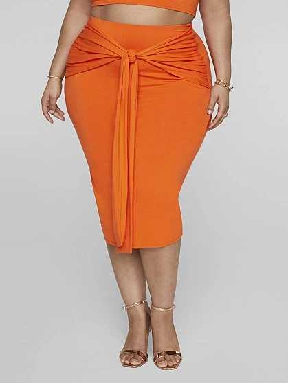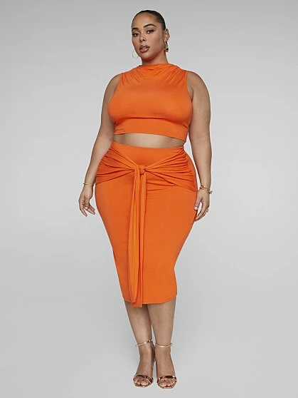 It’s the color for us. Right on time for the hot girl summer season, shine in this gorgeous orange set that’s curve-friendly, lightweight and cozy while having you look so chic. The knit skirt has a sexy bodycon fit in a chic midi length. The tie front adds a curvy-loving element, hugging your waist and hips. It pairs beautifully with the matching crop top (sold separately). Just add heels and you’re ready to slay these streets.
