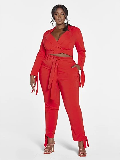 A playful and bold take on menswear, this suit is made to be worn and make a statement. The cropped length of the blazer is super sexy and the tie cuffs and structured silhouette is so chic and polished. Pair with the matching tie waist pants (sold separately) to create a stunning suit look perfect for the holidays and beyond.