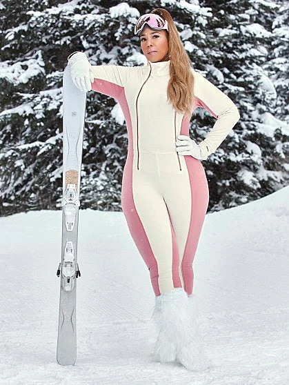 Sleek and sexy, this ski jumpsuit fits like a glove and made with your curves in mind. Featuring a chic oversized high neckline, a pretty graphic color-block design and a fitted catsuit silhouette, you’ll feel sexy and sporty as you venture out on the slopes and then end up at the lodge, unwinding with friends.