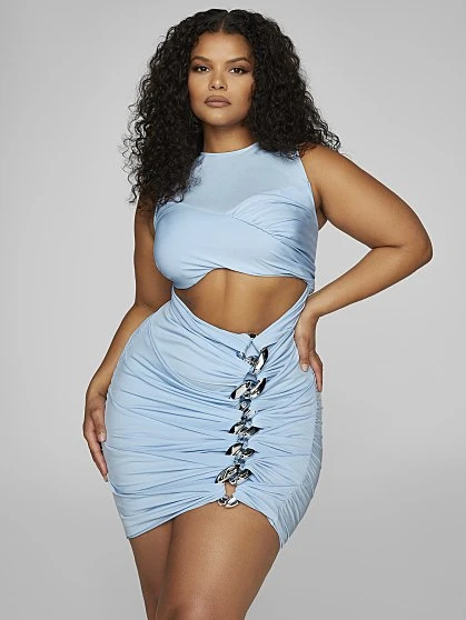 This is THAT dress you take on vacay with you to Destination Grown and Sexy. From the curve-friendly ruching and sleek bodycon fit to the fun chain detail and sexy cutout on the front, this is definitely a look that makes a statement. Thanks to the stretchy fabric, you’ll also move with ease so dance the night away with no worries. Pair with strappy heels to complete the look. From the Leslie Sidora x FTF Summer 2022 collection, featuring wear-now lightweight styles that offer versatility, color and comfort with a luxe feel.