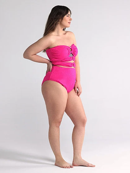 Sexy and fun, we understood the assignment when creating this bold two-piece bikini set. From the o-ring peek-a-boo front details to the gorgeous jacquard swirl pattern texture against a cute pink colorway, this swim two-piece is perfect for those days when you want to make a statement at the beach. Featuring our innovative and functional four-way stretch fabric that’s ultra-soft yet strong, the quick dry fabric provides SPF/UPF 30+ sun protection, resists chlorine and is wrinkle-free and shrinkage-free. Each piece is sold separately and can be effortlessly mixed and matched with other swim styles to keep it fresh and on point all season long.