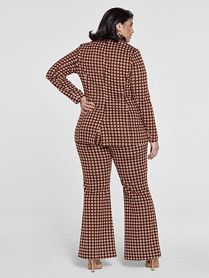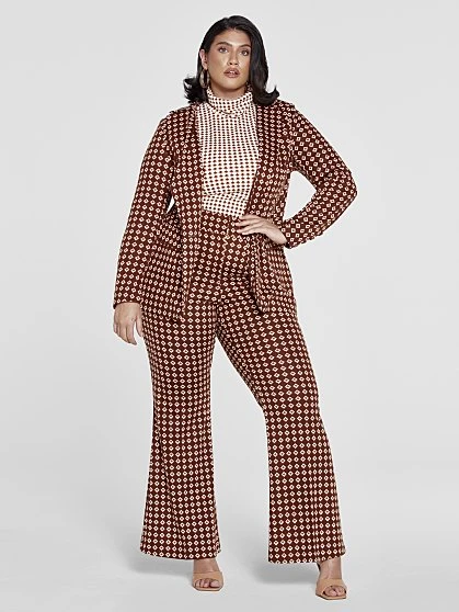 You’ll make a statement when walking into any room while wearing this gorgeous print suit. The diamond print is a chic standout and the hues of brown and ivory are perfect for anytime of the year. The pants have a flare silhouette that elongates your legs while keeping you feeling comfortable as you walk and handle your business in boss mode. Wear the pieces together or separately – either way, you’ll be elevating whatever look you create and step out in style. Top and blazer sold separately. From the Gabi Fresh x FTF collection, an elevated collection of statement pieces that are effortless, comfortable and perfect to wear now.