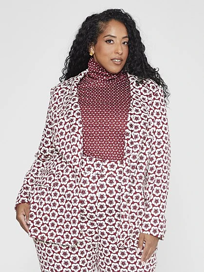 You’ll make a statement when walking into any room while wearing this gorgeous print suit. The floral print is a chic standout and the hues of burgundy and ivory are perfect for any time of the year. The blazer has a fitted look that’s not too structured and is curve-friendly. Wear the pieces together or separately – either way, you’ll be elevating whatever look you create and step out in style. Top and pants sold separately.