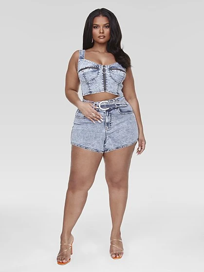 Be the first to review “Fashion To Figure Harper Rhinestone Buckle Denim Shorts” Cancel reply