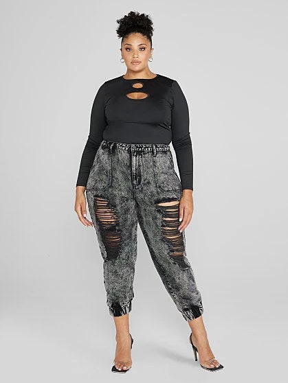 Be the first to review “Fashion To Figure High Rise Acid Wash Destructed Denim Joggers” Cancel reply