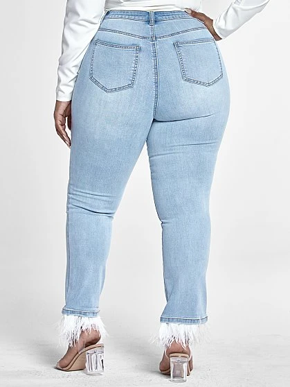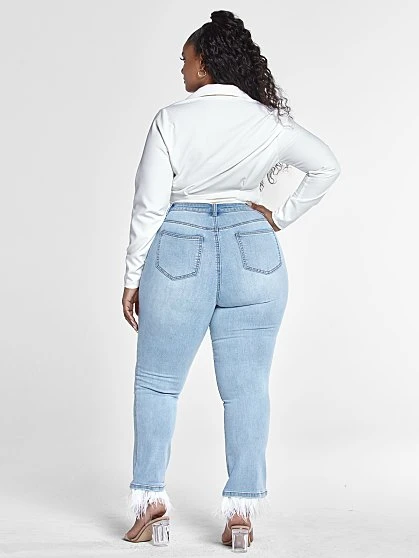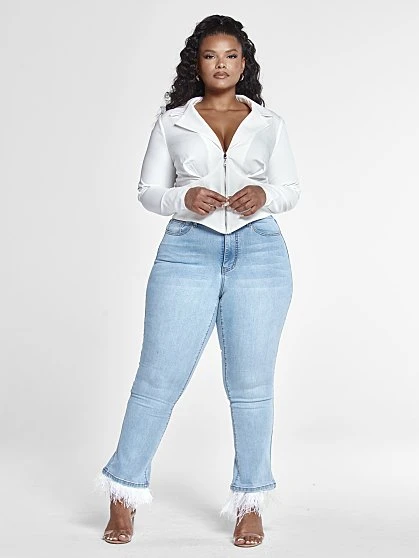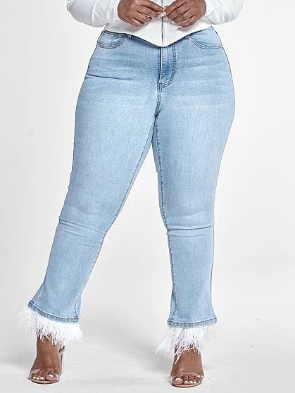 Be the first to review “Fashion To Figure High Rise Flare Jeans With Feather Trim” Cancel reply