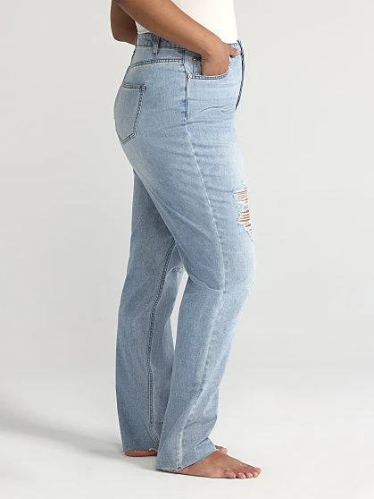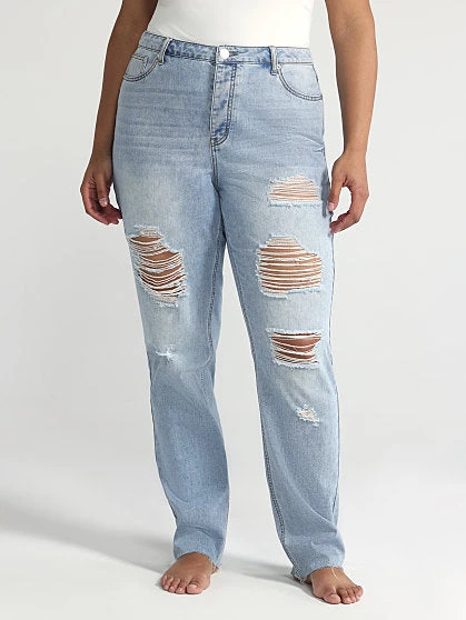 These relaxed fit jeans offer that edgy, ripped aesthetic that can easily be dressed up or down with a change of shoes and accessories. The soft texture of the fabric keeps you looking stylish without sacrificing comfort. Pair with a crop top and strappy sandals for elevated laid-back vibe or with a bodysuit and heels for a dinner look.