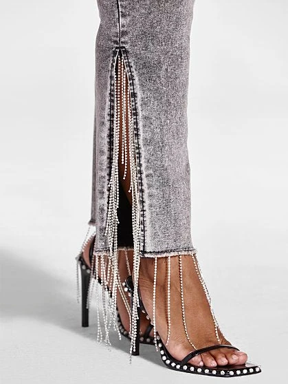 A rhinestone fringe detail and side hem slits give these jeans a fun, dressy touch. Featuring a high rise fit, fabric with great stretch and the quality fit that FTF is known for, these fancy jeans are a must-have for any FTF babe looking for a pair of jeans that are elevated and cute. Pair with a faux leather blazer or bodysuit and heels to complete the look.