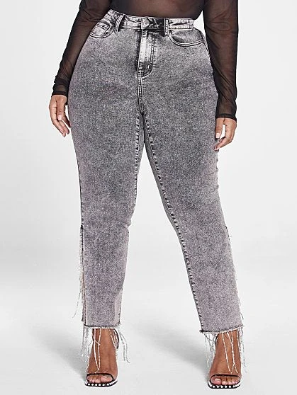 Be the first to review “Fashion To Figure High Rise Rhinestone Fringe Detail Straight Leg Jeans” Cancel reply